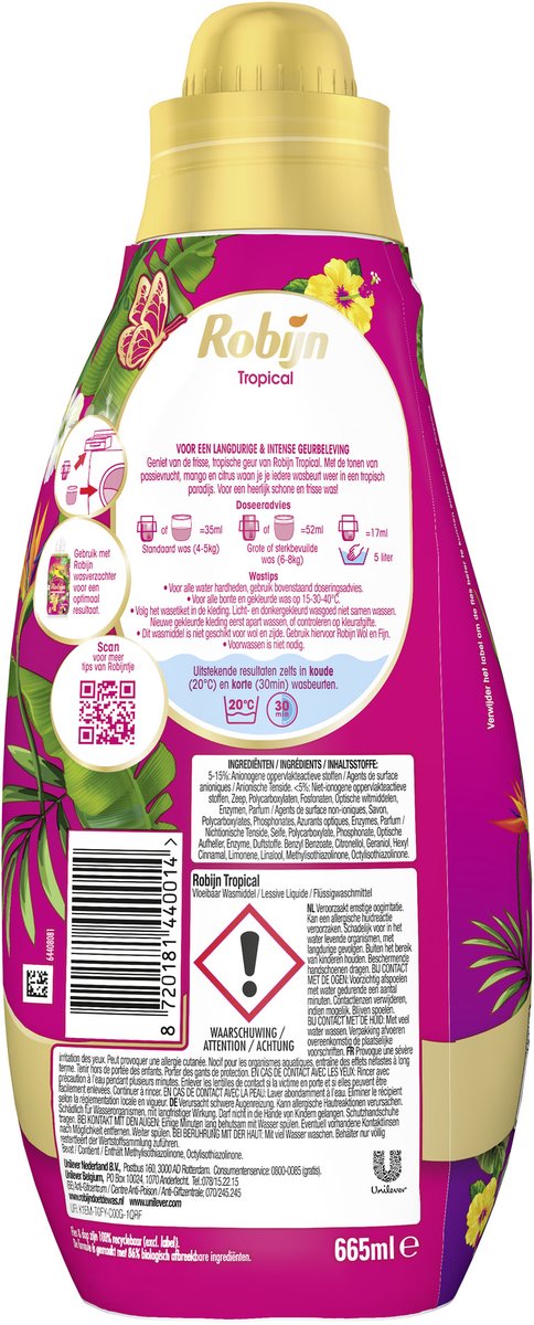 - Robijn Color Tropical Vloeibaar Wasmiddel houdt kleuren en kleding mooi