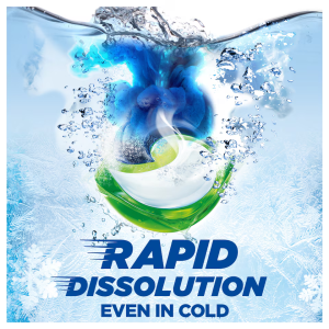 FAST DISSOLVING EVEN IN COLD: Ariel 3in1 PODS® dissolve fast even in cold water